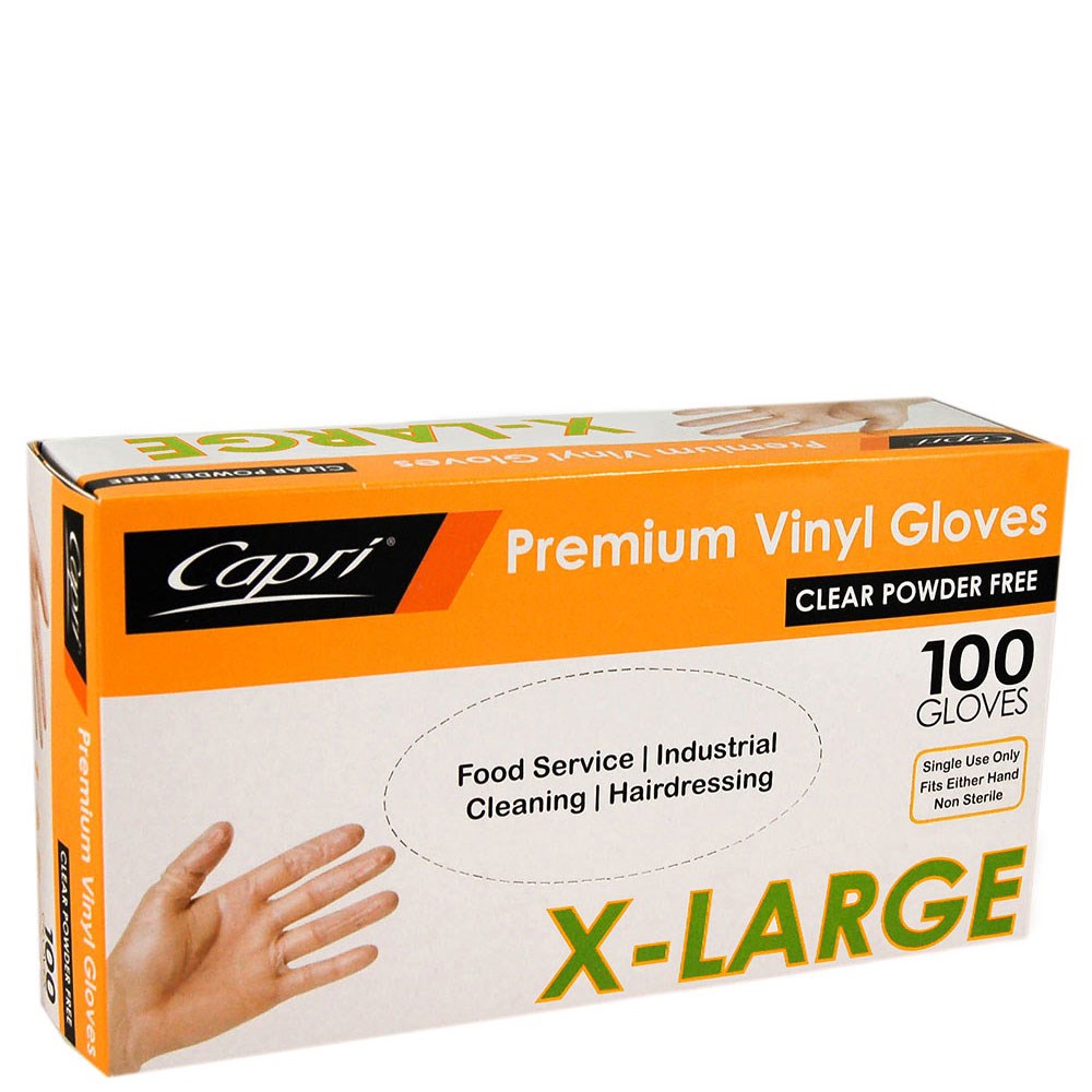 GLOVE EXTRA LARGE VINYL CLEAR POWER FREE 100S(10) # C-GV0016 CAPRI