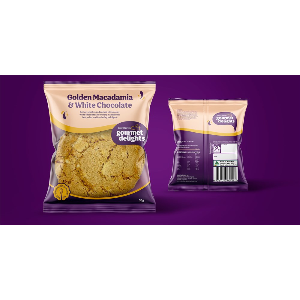 • COOKIES GOLDEN MACADAMIA & WHITE CHOC GF (6 X 11 X 55GM) # 1-178 PRIESTLEYS
