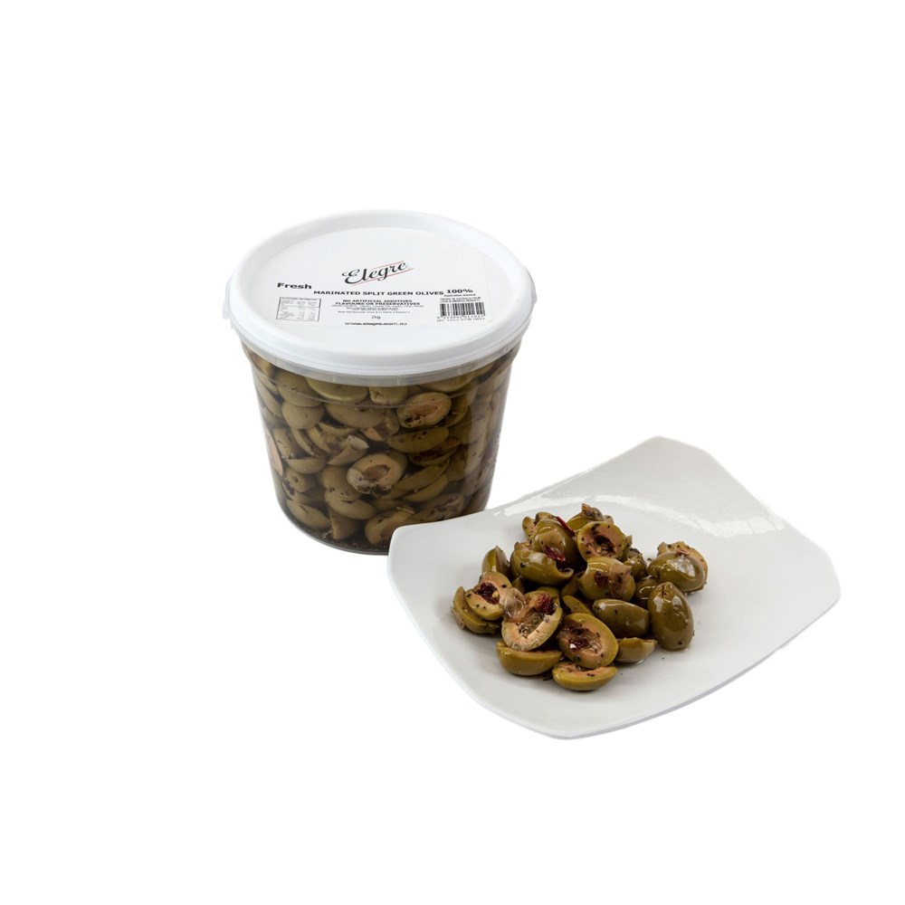 OLIVES QUEEN GREEN SPLIT MARINATED 2KG(4) # 2SPLITGR-CTN ELEGRE
