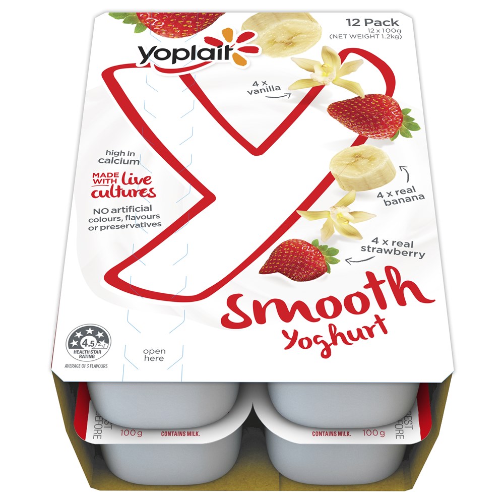 YOGHURT SMOOTH MIXED FLAVOURS (12 X 100GM)(4) # 7098 YOPLAIT