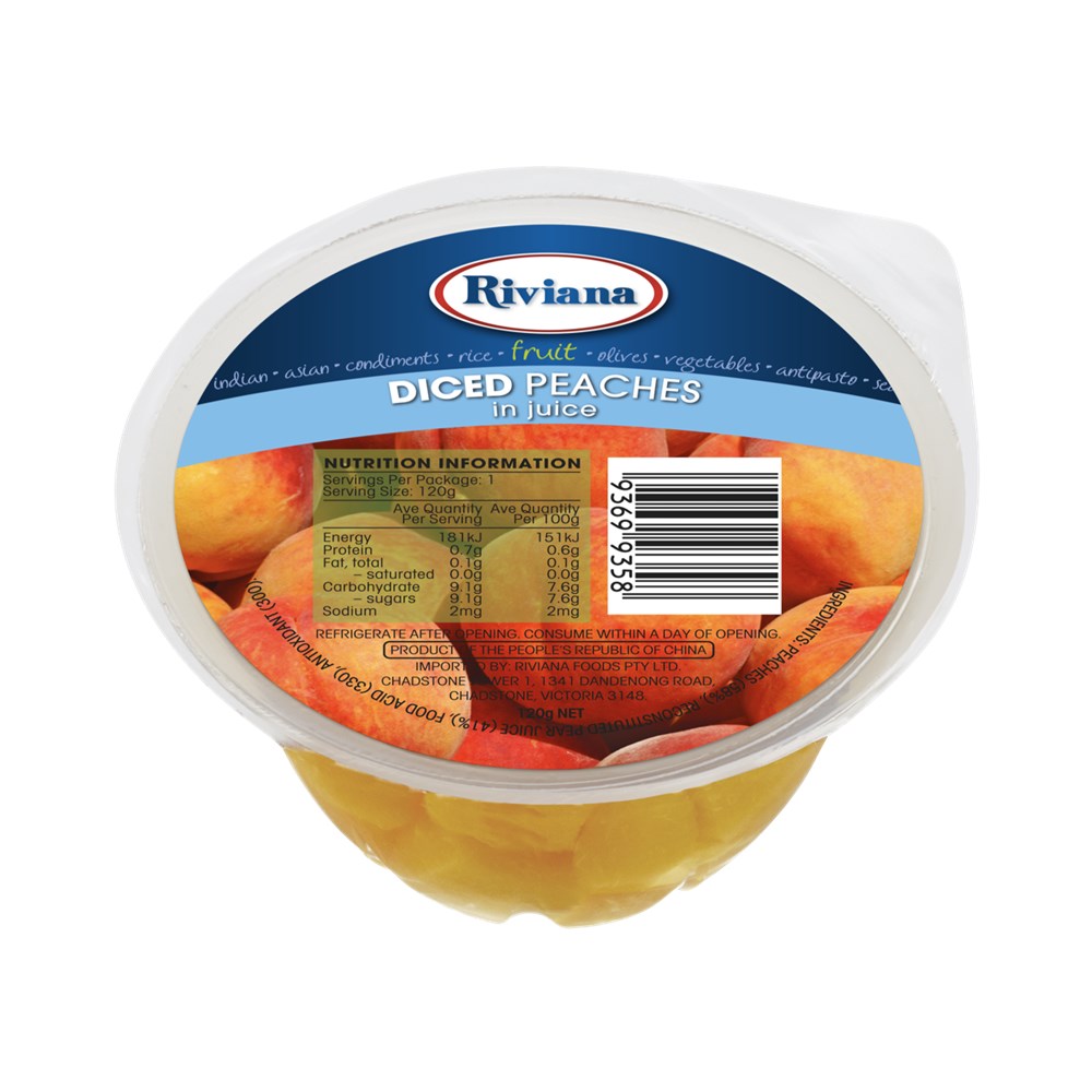 FRUIT CUPS PEACHES DICED (48 X 120GM) # 2433211 RIVIANA