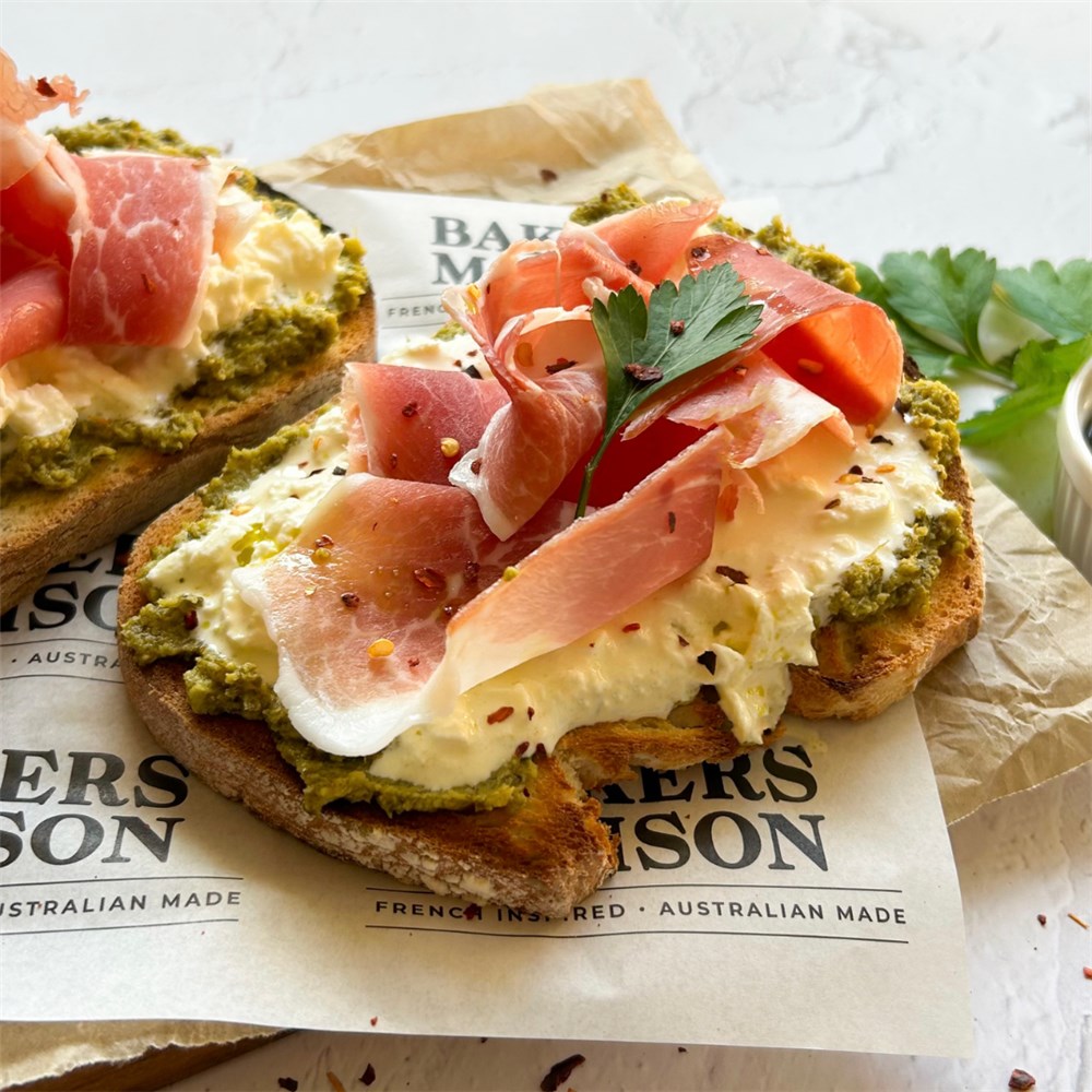 Wheat Flour [Contains Vitamins (Thiamine, Folic Acid)], Water, Sourdough Culture (3%) [Water, Fermented Rye Flour, Salt], Wheat Semolina, Iodised Salt, Wheat Gluten, Yeast [Vegetable Oil, Potato Starch], Bread Improver [Soy Flour, Emulsifier (472), Dry Yeast, Flour Treatment Agent (300), Enzyme (Amylase)], Processing Aid [Canola Oil].