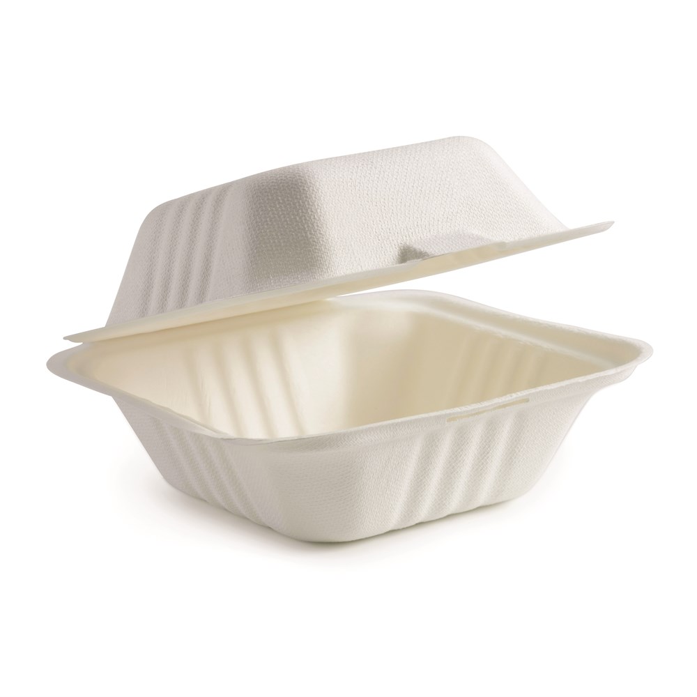 CONTAINER 6" CLAMSHELL WHITE FIBRE (15 X 15 X 8CM) 125S (4) # B-HL-66-PF BIOPAK